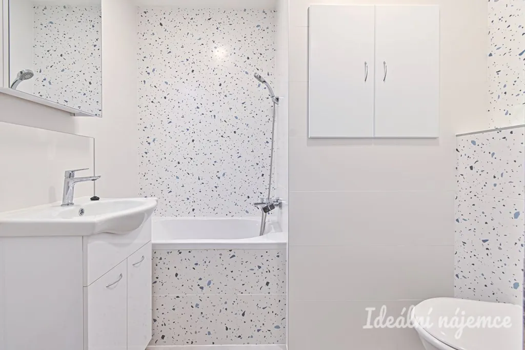Byt se nabízí vybavený dle fotografií. Obytná část je světlá a prostorná, ložnice poskytuje dostatek místa pro postel i úložné prostory. Koupelna je vybavena sprchovým koutem, umyvadlem a toaletou.