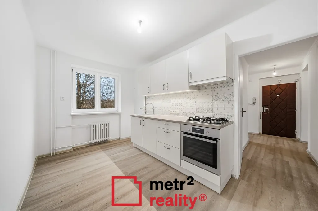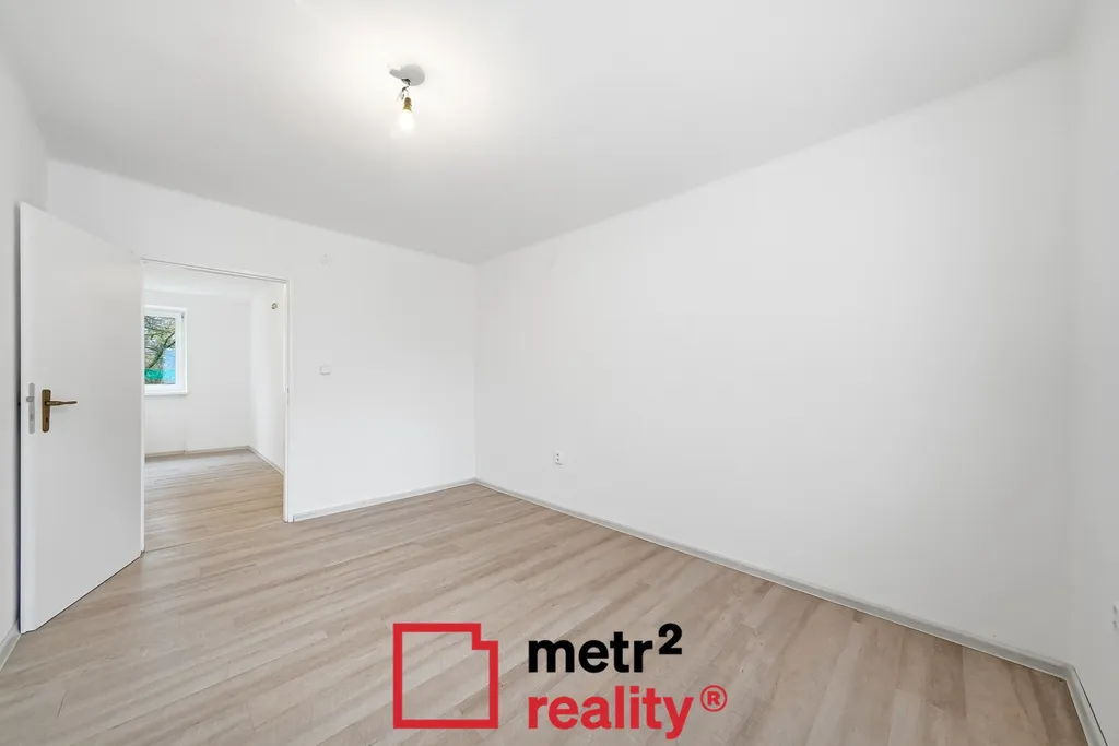 Interiér bytu tvoří vstupní chodba, kuchyně s jídelním prostorem, obývací pokoj, dva samostatné neprůchozí pokoje a kompletní sociální zázemí, tj. koupelna s vanou a samostatná toaleta.