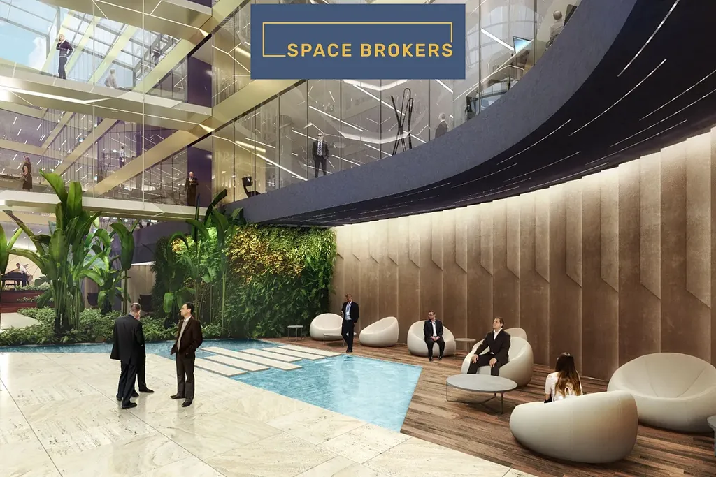 - Velkorysé atrium s relaxačními zónami a vodními prvky