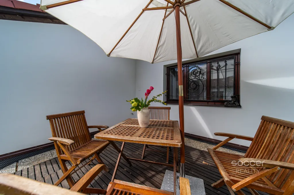 Velmi hezká zahrada vám zajistí soukromí, můžete zde odpočívat, jen tak posedět v trávě nebo si třeba zapinkat badminton či zacvičit jógu. Večer se můžete zasnít na terase pod hvězdami nebo na lavičce za šumění koruny vzrostlého ořešáku.