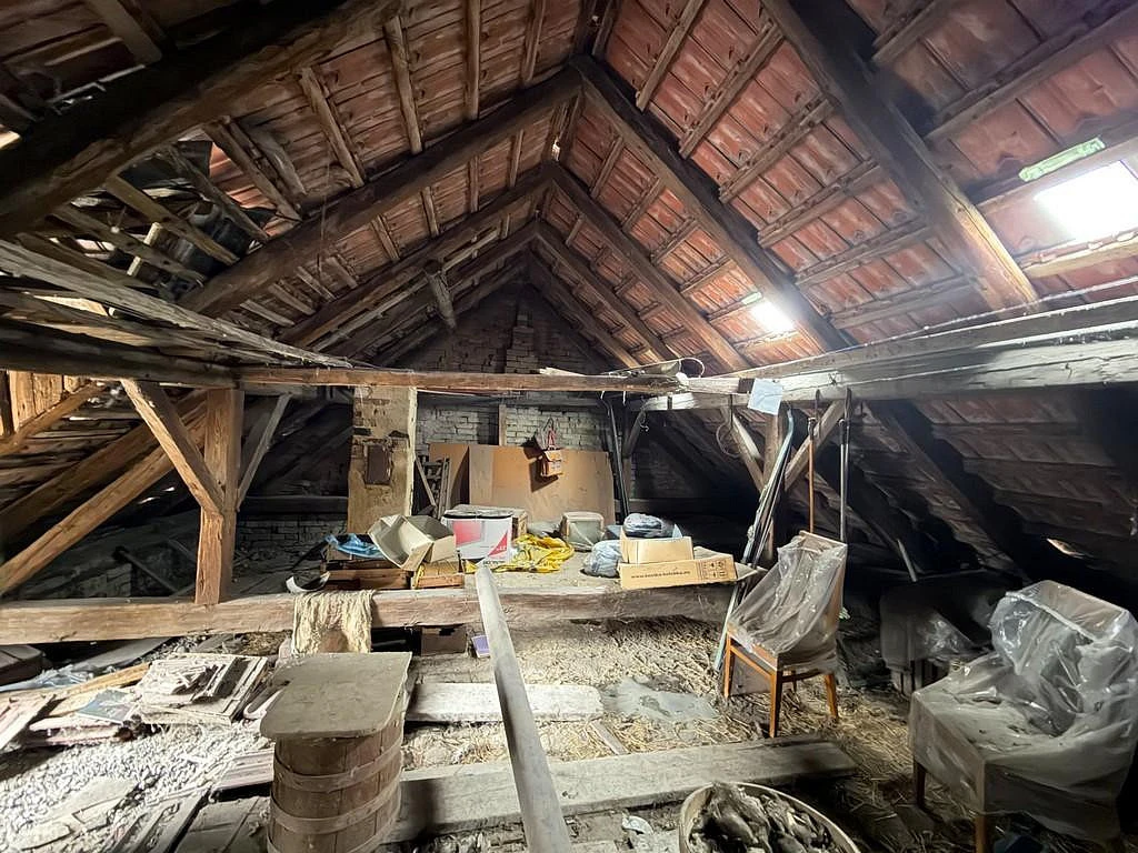 Vstupními dveřmi vejdeme do prostorné chodby o celkové ploše cca 14,2 m², která propojuje hlavní obytné části domu. Po levé straně se nachází pokoj o výměře cca 16,42 m², který může sloužit jako obývací pokoj či ložnice. Z tohoto pokoje je vstup do další místnosti o ploše cca 10,11 m², vhodné jako ložnice, dětský pokoj, šatna nebo pracovna. Z již zmíněné chodby je dále přístup do kuchyně o rozloze cca 9,64 m², kde je zároveň umístěn ohřev teplé vody. Z kuchyně vejdeme do prostorného pokoje o velikosti cca 22,47 m², který lze využít jako hlavní obývací pokoj či další ložnici. Z kuchyně je také přístup do menší místnosti o celkové ploše cca 8,03 m², jež může sloužit jako samostatná jídelna. Z této místnosti je vstup do komory o celkové ploše cca 4,34 m² a zároveň je z ní možné projít zpět do hlavní chodby, což vytváří praktické dispoziční propojení. Chodba pokračuje ke koupelně o celkové ploše cca 4,2 m² a samostatnému WC o celkové ploše cca 1,08 m². Z chodby je vstup na soukromý dvůr, odkud se vchází do jednotlivých nebytových prostor. Z dvoru je přístup na půdu nad domem o výměře cca 68,52m², která přímo vybízí k půdní nástavbě. Nachází se zde komora o rozloze cca 7,55 m², ze které vedou schody do sklepa o celkové ploše cca 5,76 m². Na dvoře jsou dále tři menší nebytové prostory o celkových plochách cca 5,13 m², 4,78 m² a 2,59 m². Ze dvora je po úpravách možné, jak je výše již uvedeno vytvořit místo pro relaxaci a odpočinek.