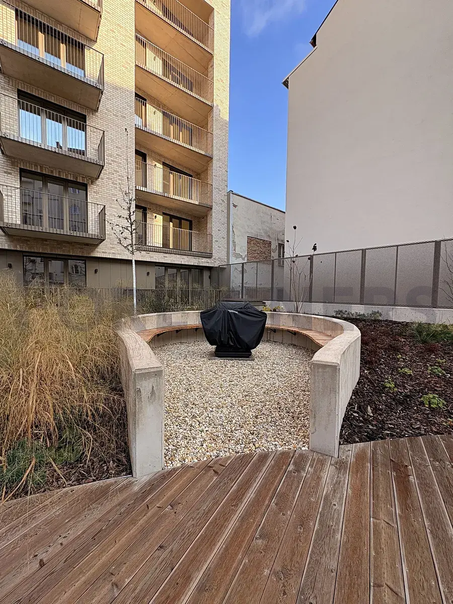 Pro studium nebo práci je k dispozici sdílený lounge s coworkingovým zázemím, tiskárnou a Wi-Fi. Součástí komplexu je také krásně upravený zelený vnitroblok s altánky, dětským hřištěm, grilovacími místy a odpočinkovými terasami.
