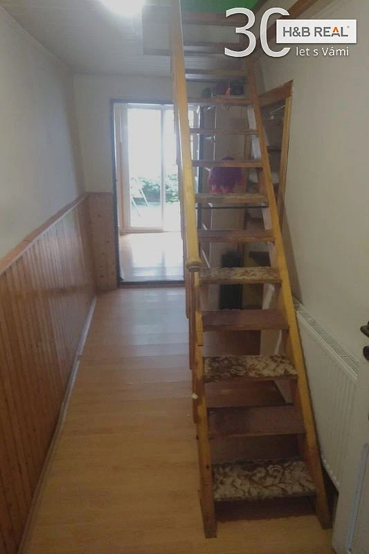 Nabízíme ke koupi ideální ½ řadového rodinného domku, nacházejícího se v historickém městě Dolní Kounice, v malebném údolí řeky Jihlavy, s výbornou dostupností do Brna. Celková výměra pozemku je 354 m², z toho zastavěná plocha s dvorkem 138 m² a svažitá zalesněná zahrada 216 m² (tato parcela je ve 100% vlastnictví prodávajícího). Dům je v průměrném stavu, po rekonstrukci v letech 1995-2000. Je napojený na veškeré inženýrské sítě. V přízemí je chodba, velký obývací pokoj s kuchyňským koutem (33 m²), ložnice, prostorná koupelna s WC (8 m²), schodiště. V podkroví se nacházejí 4 samostatné menší pokoje a šatna. PENB nebyl dodán, uvádíme G. V domě bydlí již několik let spolehlivý a platící nájemce, který má zájem v nájmu pokračovat. Dostupnost: Brno 20 km, Židlochovice 15 km, Pohořelice 11 km. Centrum města, prodejna potravin: 400 m, ZŠ a MŠ 650 m. Vhodné pro vlastní bydlení i jako investice, s případným dokoupením druhé id. ½ od vlastníka, kterým je Česká republika.