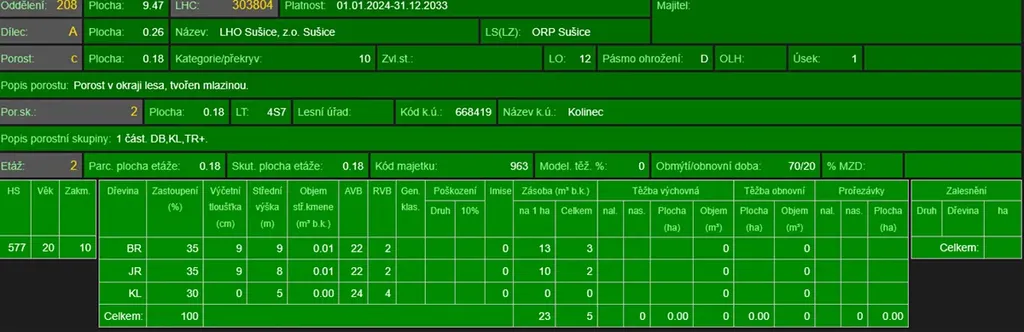 - p.č. 822/2 vedená jako lesní pozemek o celkové výměře 1 837 m2 (stáří lesa 22 let - zastoupení dřevin bříza, jeřáb, javor)
