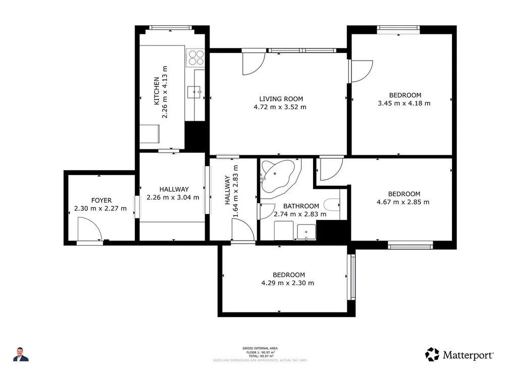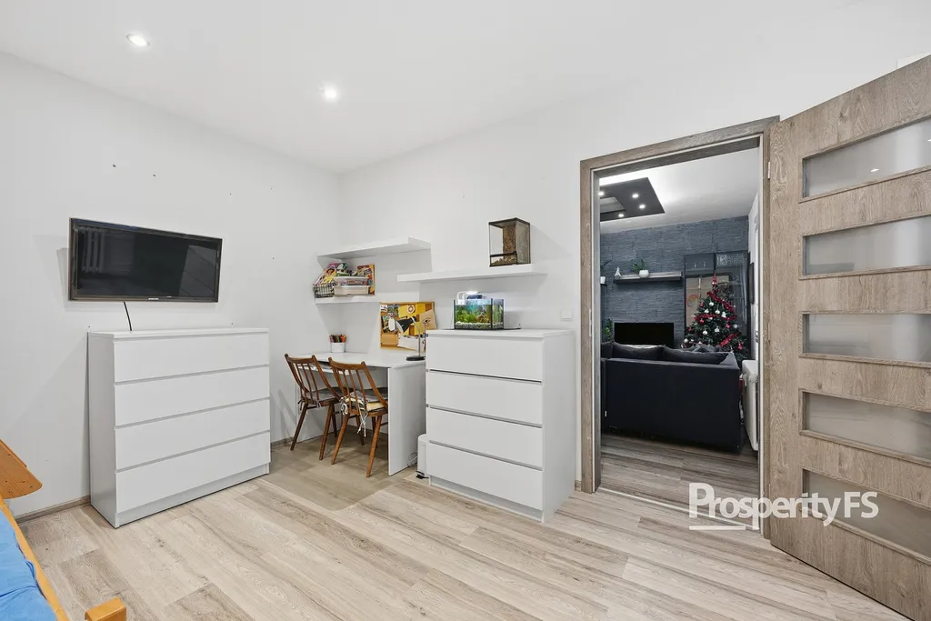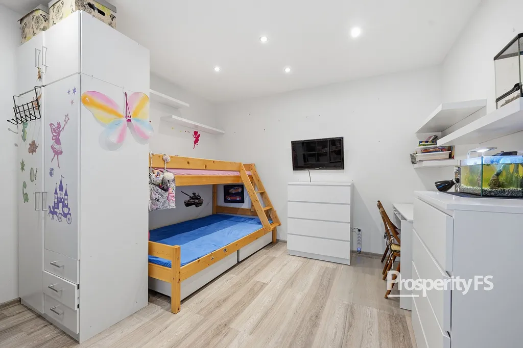 Dispozice 4+1 nabízí ideální prostor jak pro rodinu, tak i pro pár, který hledá pohodlné bydlení bez dalších investic. Byt nabízí ložnici, dětský pokoj, prostornou chodbu, ze které se dostanete do moderní kuchyně, koupelny s vanou, tak i do obývacího pokoje.