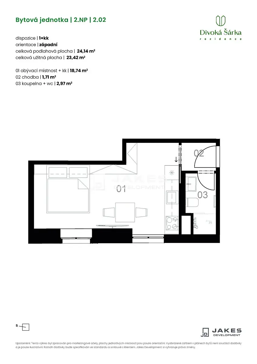 Pronájem bytu 1+kk, Praha - Liboc, Jenečská, 27 m2 (ID: 2044302)
