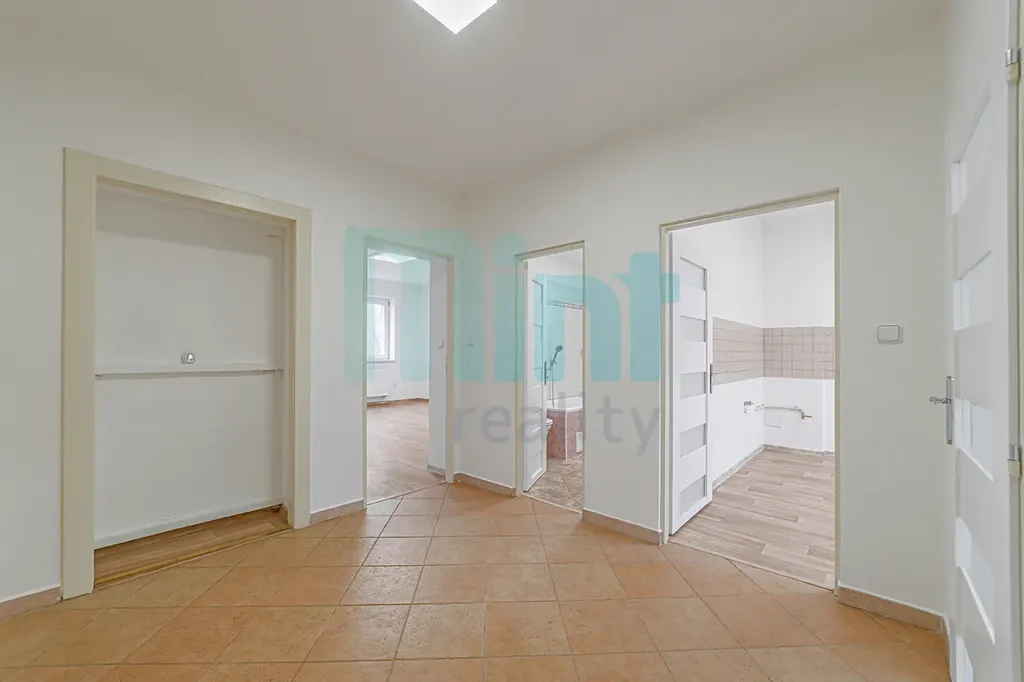 Jedná se o byt s dispozicí 2+1 a podlahovou plochou 70 m², situovaný v 1. NP. Součástí bytu je také další malá místnost o velikosti 7m² - lze ji využít jako pracovnu nebo šatnu, a sklepní kóje v 1. PP, která je již zahrnuta v ceně nájmu.