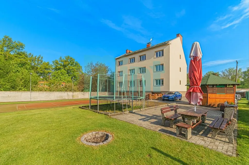 Velkým bonusem této nemovitosti je sdílený přístup k venkovním prostorám, kde můžete trávit čas na zahradě, využívat altán či ohniště. Pro sportovní nadšence je k dispozici sportovní areál, kde si zahrajete tenis, stolní tenis, petanque nebo badminton. Sportovní zázemí je navíc doplněno o šatny, sprchy, toalety a dokonce i kuchyň.