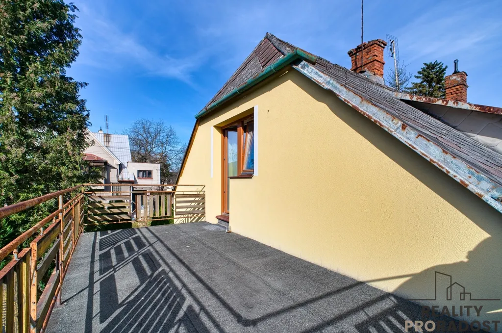 V patře jsou 2 pokoje k dokončení. Jeden s velkou terasou, kde je třeba položit podlahu a je téměř hotovo. Ve druhém pokoji je toho k dokončení více. Malá místnost v patře je pak ideálním místem ke zbudovaní další koupelny.