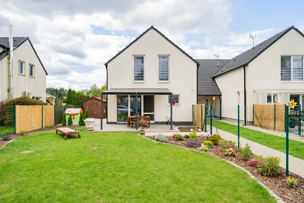 Pokud hledáte pohodlné bydlení pro Vaši rodinu se zahrádkou a zároveň v blízkosti Prahy, máme pro Vás skvělou nabídku na koupi řadového domku. Jedná se v podstatě o mezonetový byt 3kk, 86 m2, se zastřešenou terasou, zahradním domkem, parkováním a pečlivě udržovanou zahradou o rozloze 228 m2.