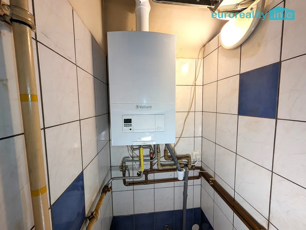 Topení je plynové ústřední s novým kombinovaným úsporným kotlem. K dispozici je funkční vzduchotechnika. Voda je městská.