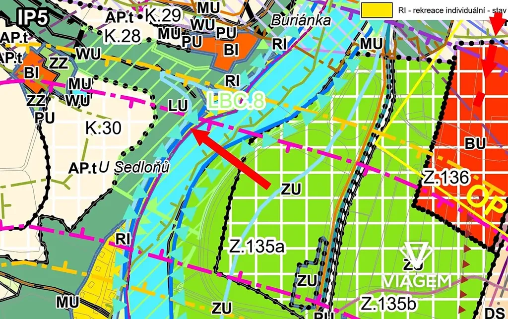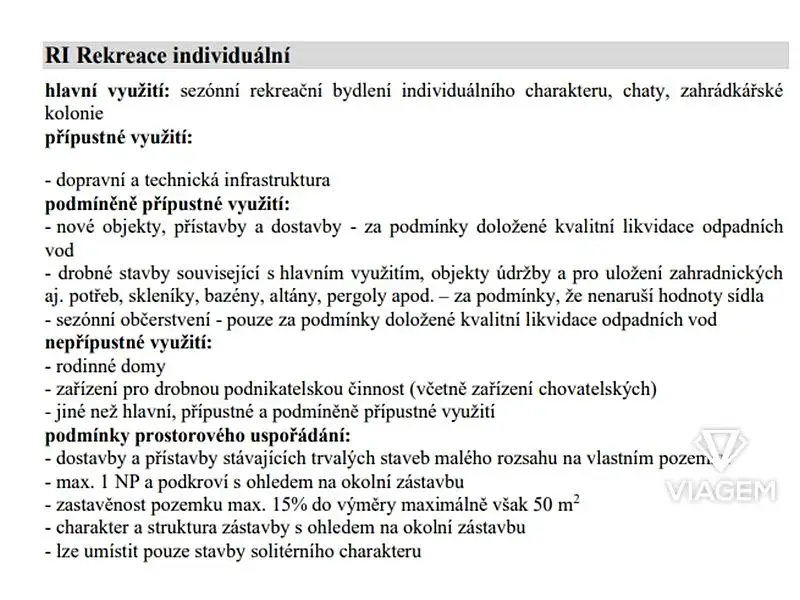 Dle územního plánu je pozemek evidován v "RI - rekreace individuální".