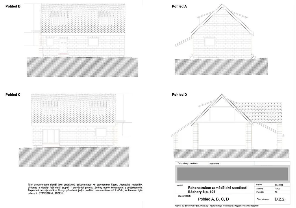 Stávající majitelé zamýšleli, že si z původní obytné části vybudují skromné bydlení, aby zde mohli pobývat během rekonstrukcí zbylých částí stavení. Součástí prodeje je rovněž projekt na nový rodinný dům, který by stál místo původního špejcharu.