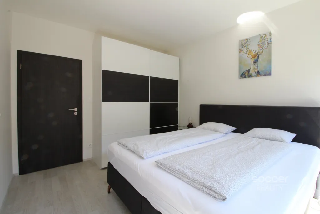 Soccer Reality vám exkluzivně zprostředkuje pronájem moderního bytu o dispozici 2+kk a celkové ploše 55 m2, který se nachází ve 4. patře novostavby Port Karolína v ulici U Mlýnského kanálu na Praze 8. Tento světlý a vkusně řešený byt je kompletně vybaven zcela novým nábytkem i spotřebiči, takže je připraven k okamžitému nastěhování bez nutnosti dalších investic. Srdcem bytu je obývací pokoj s kuchyňskou linkou vyrobenou na míru, která disponuje všemi moderními spotřebiči. V ložnici najdete komfortní manželskou postel a prostorné vestavěné skříně zajišťující dostatek úložného prostoru.