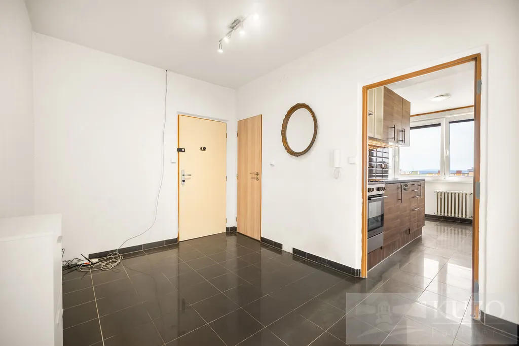 Byt disponuje prostornou vstupní předsíní, dvěma neprůchozími pokoji zajišťujícími dostatek soukromí a samostatnou kuchyní vybavenou plynovým sporákem a myčkou. Dále je zde koupelna a samostatné WC. Z ložnice je vstup na západně orientovanou lodžii s příjemným výhledem do okolí. Ostatní okna jsou orientována na východ, což zajišťuje dostatek denního světla po celý den.