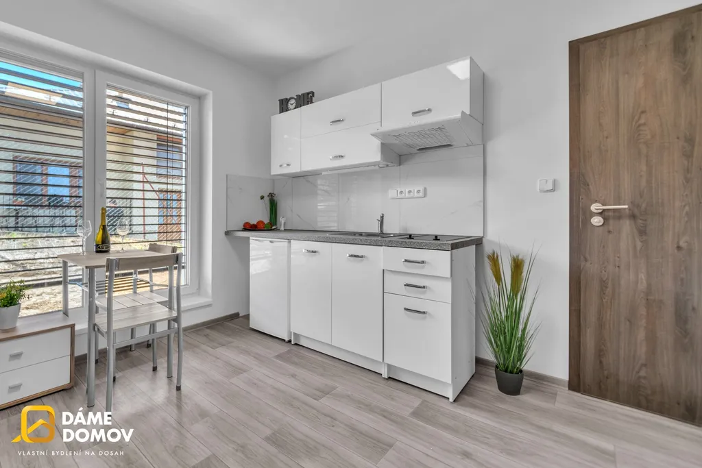 Nabízíme Vám pronájem nového, nikdy neobývaného apartmánu ve Zlíně Prštném, na ul. Svatopluka Čecha. Moderní a útulný byt je vybavený kuchyňskou linkou s varnou deskou, lednicí, mikrovlnnou troubou, koupelnou se sprchovým koutem a wc. Dále je zařízen nábytkem - postelí s matrací, skříní, komodou, stolem a židlemi.