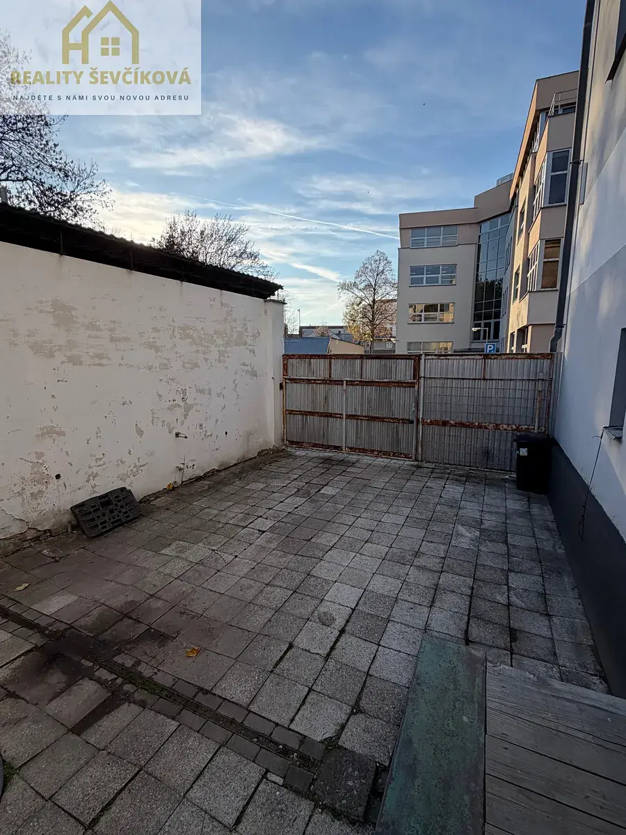 Za objektem se nachází oplocená zpevněná plocha o velikosti cca 70 m², vhodná k parkování až 4 vozidel nebo k zásobování přes rampu.
