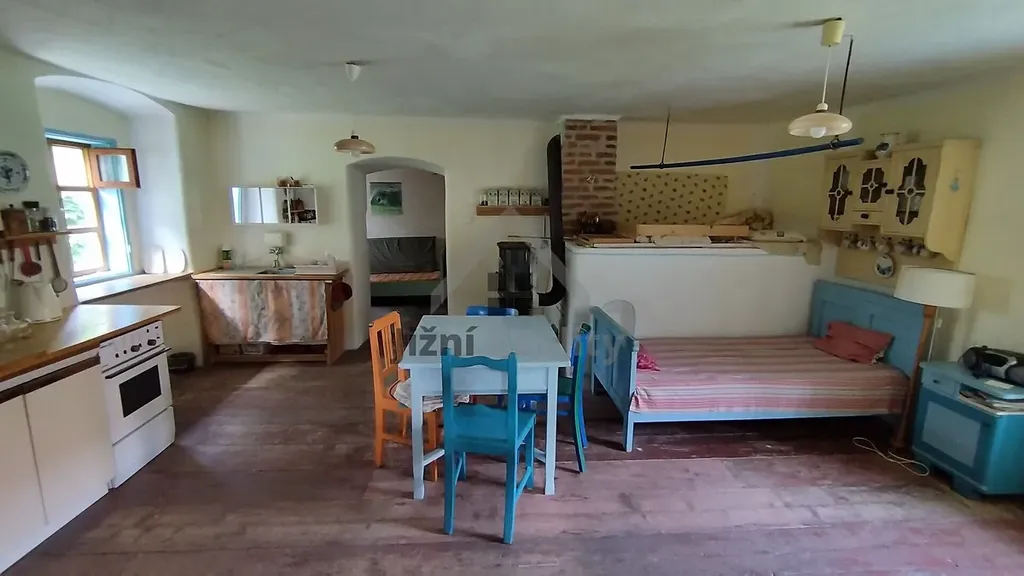 Nabízíme Vám k prodeji krásnou chalupu, která se nachází v atraktivní lokalitě a naprosto krásném a tichém prostředí v obci Kuří u Benešova nad Černou. Nemovitost má velice lukrativní polohu s krásným výhledem do přírody a nachází se na okraji obce. Dům se nachází na vlastním pozemku o velikosti 796 m2, z toho je zastavěná plocha domu je 496 m2, dvůr má výměru 300 m2, užitná plocha domu je cca 270 m2. Dům je nyní využíván jako chalupa, lze i trvale bydlet. Nemovitost má jedno nadzemní podlaží, prošel rekonstrukcí interiérů – izolace, podlahy, rozvody elektriky, vody, byla překládaná střecha. V přízemí domu se nachází obytná kuchyně s pecí, dva pokoje, WC, koupelna (příprava na dodělání), velká krytá společenská místnost a prostory, kde lze vybudovat další pokoje. Dále se u domu nachází stodoly. V podkroví lze vybudovat další pokoje. Vytápění domu je pecí a krbovými kamny. Elektrika 220/380, studna, odpady svedeny do septiku. Velmi krásné místo, pro více informací nás neváhejte kontaktovat.
