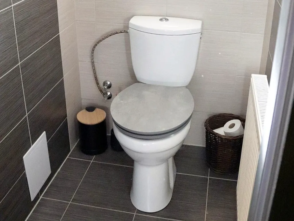 plnohodnotná koupelna se sprchovým koutem a toaletou