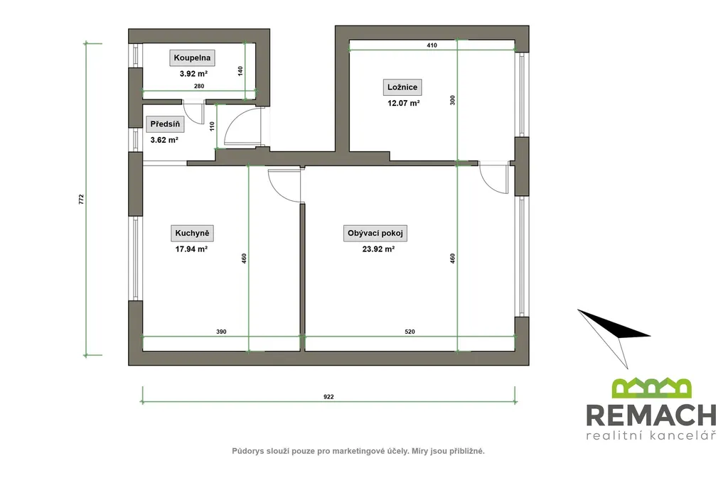 Dispozice 2+1 s dostatkem prostoru, prostorné a velké pokoje.
