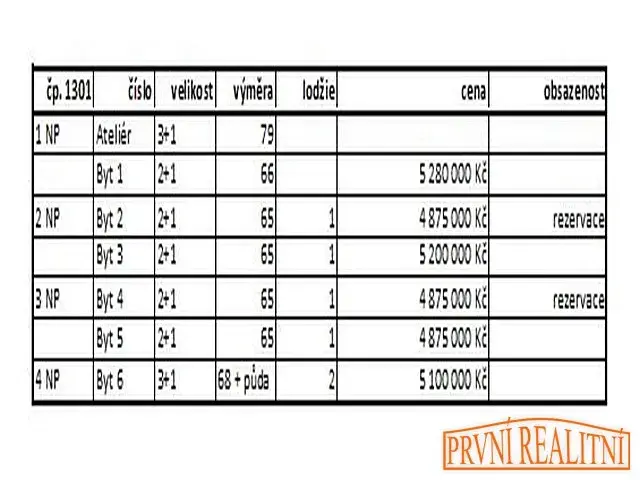 - připravujeme pro Vás 6 bytů o výměře od 66 m²