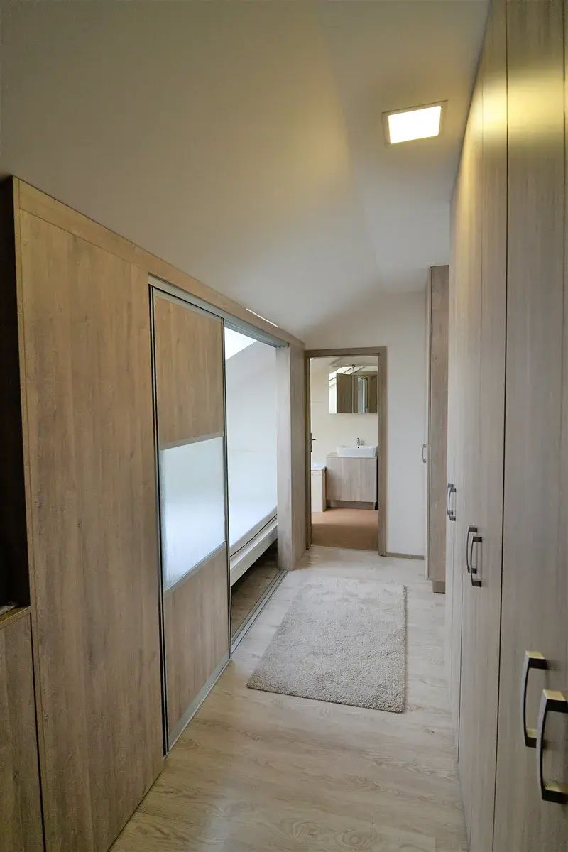 Předsíň- předsíňová stěna. Vestavba dvojlůžko a komoda. Vytápění - vlastní plynový kotel.