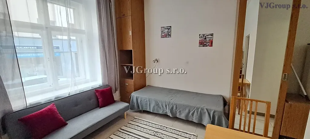 Dovolujeme si Vám nabídnout k pronájmu praktickou, zrekonstruovanou garsoniéru ve vzorně udržovaném cihlovém domě nalézajícím se v klidné ulici v samotném centru Prahy 7 - Holešovicích. Byt s novými dřevěnými špaletovými okny je situován ve zvýšeném prvním patře šestipodlažního domu. Dispozice bytu o celkové výměře 22 m² sestává z předsíně, obytné místnosti s menší kuchyňskou linkou vybavenou dřezem, dvou plotýnkovou sklokeramickou deskou s digestoří a malou chladničkou, koupelny se sprchovým koutem, umyvadlem, automatickou pračkou a samostatnou toaletou s umyvadlem. Obytná místnost je oproti fotografiím kromě kuchyňské linky vybavena pouze jídelním stolem se dvěma židlemi. Podlahy jsou kryty dlažbou. Vytápění bytu je zajištěno přímotopným el. tělesem na stěně a dále mobilním elektrickým topným tělesem. Ohřev TUV je zajištěn prostřednictvím bojleru o objemu 95 l., obojí s výhodným nízkým cen. tarifem el. energie. V bytě je k dispozici zásuvka rozvodu společné televizní antény pro příjem volně šiřitelných TV kanálů a také s možností aktivace přívodu internetového signálu. Součástí pronájmu je i zděný sklep v 1. PP domu. Cena za pronájem činí Kč 13.500 + poplatky 1.000,- Kč/měs. (zahrnují zúčtovatelnou zálohu na náklady spotřeby studené vody v bytě, úklidu domu, el. energie ve společných prostorách domu, odvozu odpadu, pojištění spol. prostor domu a správy domu a pozemku). Nájemce si dále bude samostatně hradit spotřebu el. energie v bytě (smlouva na dodávky el. energie do bytu bude převedena na nájemce). Kauce pro majitele je požadována ve výši 2 měsíčních plateb. Dům se nachází v nedaleké blízkosti tramvajové zastávky Kamenická s přímým spojením do centra, stanice metra „C Vltavská“ je vzdálena pouhé 2 minuty tramvají, rovněž metro „A Hradčanská“ je v dosahu pouhých 5 min. jízdy tramvají. Vzhledem ke skutečnosti, že majitel dosud nedodal PENB, jsme proto povinni dle platné legislativy označit nemovitost energetickou třídou G. Všude v okolí se nalézá vysoká míra občanské vybavenosti (lékaři, školy, restaurace, obchody apod.). Oblíbený park Stromovka pro sport a relaxaci v přírodě je rovněž přístupný v těsné dochozí vzdálenosti. S ohledem na velikost bytu bude majitelem preferována jako nájemce 1 osoba. Byt je volný od 1. 1. 2026.