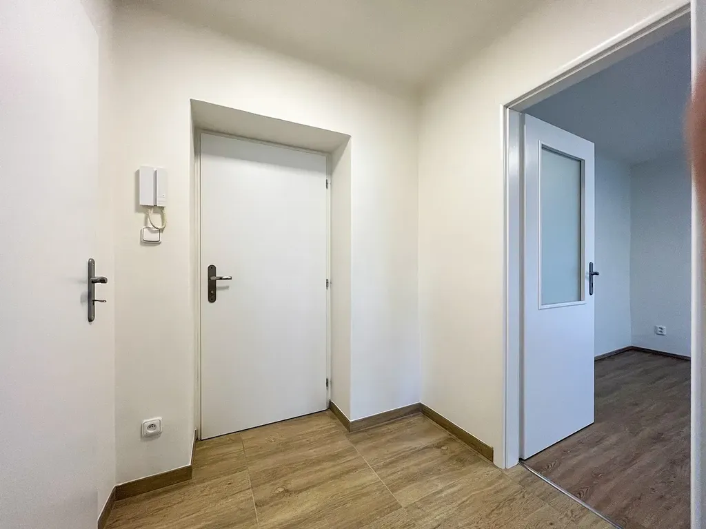 Nabízíme k dlouhodobému pronájmu byt 1+1 situovaný ve 2. NP cihlového domu v Praze 12 – Komořany, ul. Krupná 8. Byt je po kompletní rekonstrukci. Celková podlahová plocha bytu činí 30 m2 a sestává se z předsíně, koupelny se sprchový koutem, umyvadlem a WC, kuchyní s kuchyňskou linkou (vybavená sklokeramickou varnou deskou a troubou) a ložnice. Obyvatelům domu je k dispozici sušárna a menší společný balkon v patře. Dům je umístěn v klidné zelené lokalitě s dobrou dopravní dostupností - vedle domu je zastávka autobusu Na Šabatce s přímým spojem na metro C a nádraží Komořany odkud se bezstarostně dostanete osobním vlakem na Hlavní nádraží. Pozor - byt není vybaven pračkou a lednicí, toto vybavení zajišťuje sám nájemce.