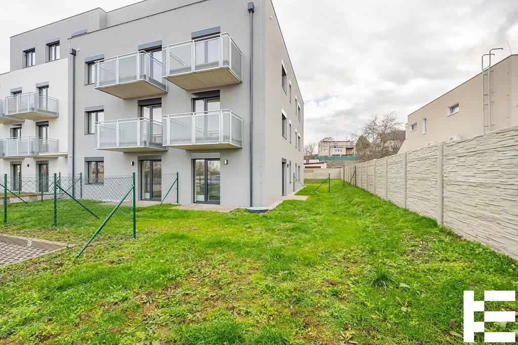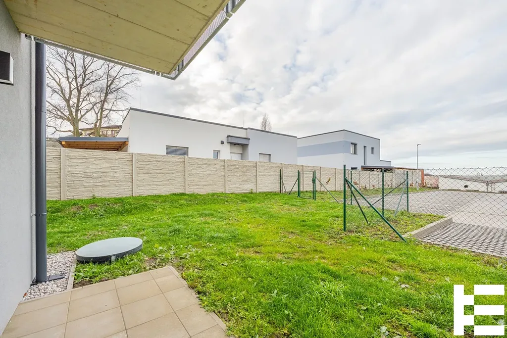 Bytová jednotka 2+kk o podlahové ploše 60,24 m² (dle vyhl. 366/2013 Sb.) se zahradou (122,94 m²) , která se nachází ve 1. NP a je členěná na vstupní chodbu (8,56 m²), obývací pokoj + kk (23,07 m²), ložnici (12,57 m²) koupelnu (5,78 m²) a sklep.