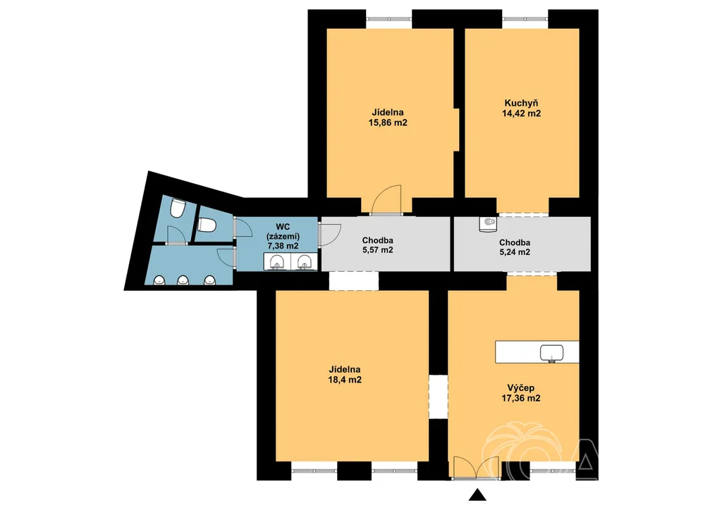 Restaurační prostor: 84 m²