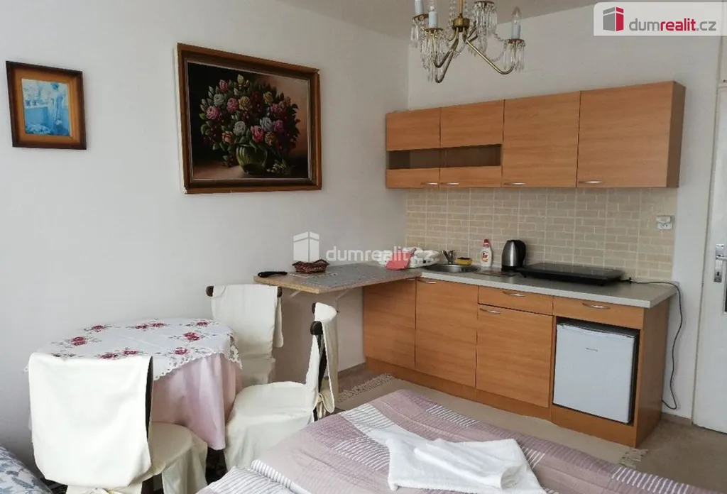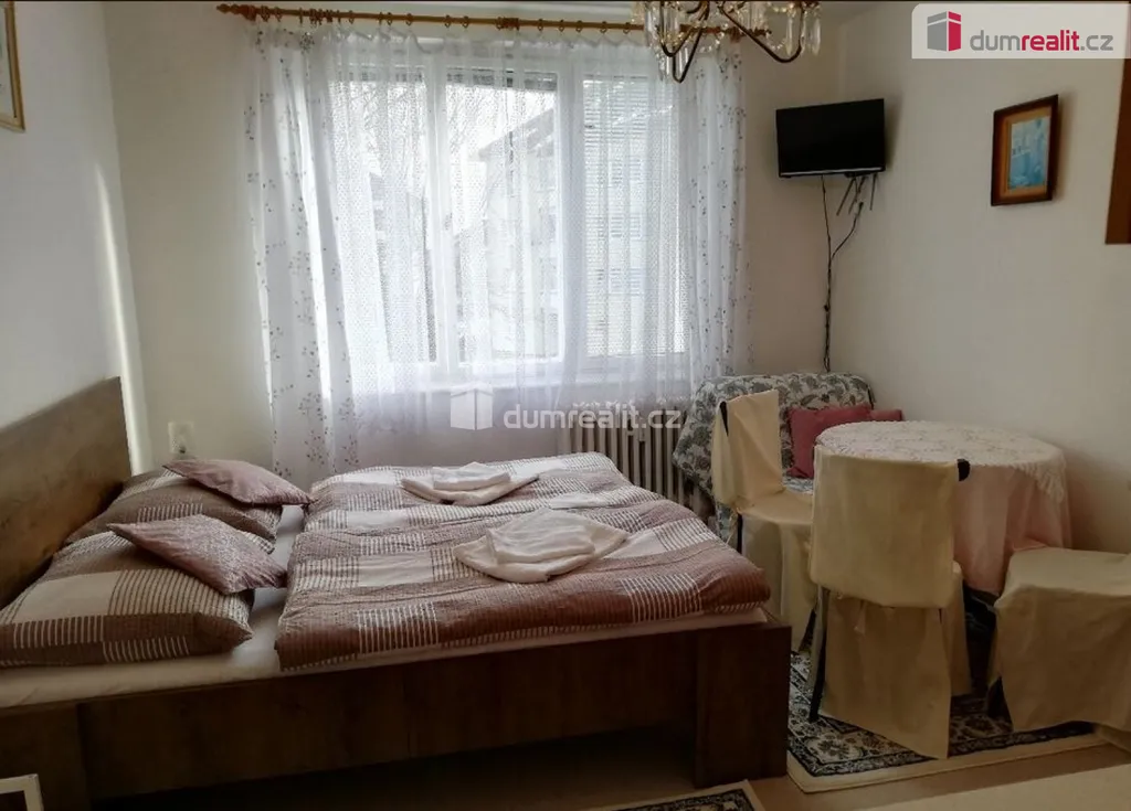 Dumrealit.cz Vám zprostředkuje pronájem krásného slunného bytu 1+kk/S v prvním patře panelového domu s výtahem v Mariánských Lázních. Bytová jednotka o celkové rozloze 24 m² nabízí předsíň, obývací prostor s kuchyňskou linkou a koupelnu se sprchou a toaletou. Krásná bytová jednotka je po rekonstrukci a je novému nájemníkovi ihned k dispozici. Nájemník může užívat lodžii v mezipatře, která náleží výlučně k bytu. V bytě zůstane veškeré vybavení patrné z fotografií: kuchyňská linka včetně varné desky, lednice, stůl se židlemi, postel s matracemi, 2 skříně, noční stolek, botník, TV, zrcadlo, v koupelně pračka. Budova je také po revitalizaci: zateplená nová fasáda, zateplená nová střecha, interiéry budovy, stoupačky, vstupní dveře, schránky. Vytápění je zajištěno centrálně dálkově z teplárny, v domě je rozvod anténové přípojky na televizi (STA). V okolí domu je dostatek parkování, nedaleko je poliklinika, zastávka MHD. V Mariánských Lázních je veškerá občanská vybavenost včetně úřadů, bank, restaurací, obchodů, jsou zde supermarkety LIDL, PENNY, TESCO, Kaufland, BILLA, DM, Planeo elektro, JYSK, super ZOO, TAKKO, KIK, Deichmann. Mariánské Lázně jsou úžasné místo pro život i odpočinek, jsou prošpikované sítí turistických, cyklistických a běžkařských tras. Sportovcům je k dispozici plavecký bazén, sportovní areál Viktorka, plochá dráha, zimní stadion pro bruslaře, lyžařská sjezdovka s lanovkou, jezdecká škola, tenisové kurty, v létě je v provozu koupaliště Lido s písečnou pláží. Mariánské Lázně se roku 2021 dostaly na seznam světového kulturního dědictví UNESCO, skýtají klid lázeňského města se zdravou vodou a čistým ovzduším. Mariánské Lázně se nacházejí v blízkosti německých hranic, tedy je vhodné pro ty, kteří tam hledají pracovní uplatnění. Nájemné činí 11.625,-Kč měsíčně, měsíční poplatky činí 1.375,-Kč pro 1 osobu, vratná kauce je 26.000,-Kč. Elektřina se přepisuje na nájemníka. Provize RK činí 9.000,-Kč + DPH (celkem 10.800,-Kč). Ev. číslo: 653420.