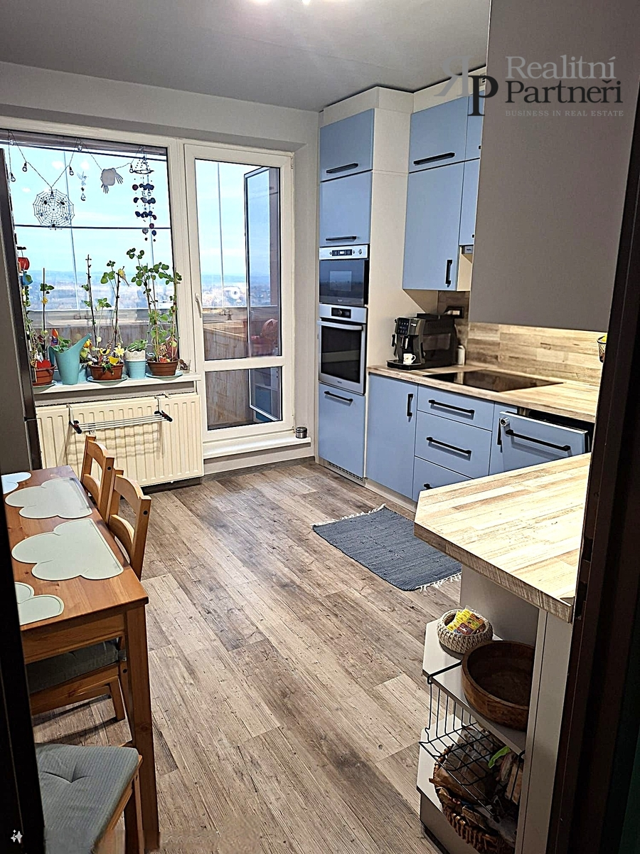 Byt prošel postupnou rekonstrukcí: má zděné jádro, nové rozvody elektřiny a zánovní kuchyňskou linku se spotřebiči. Výhodou je také zasklená lodžie o velikosti 3,7 m², která nabízí krásný výhled a příjemné místo k odpočinku. K bytu náleží rovněž sklepní kóje.