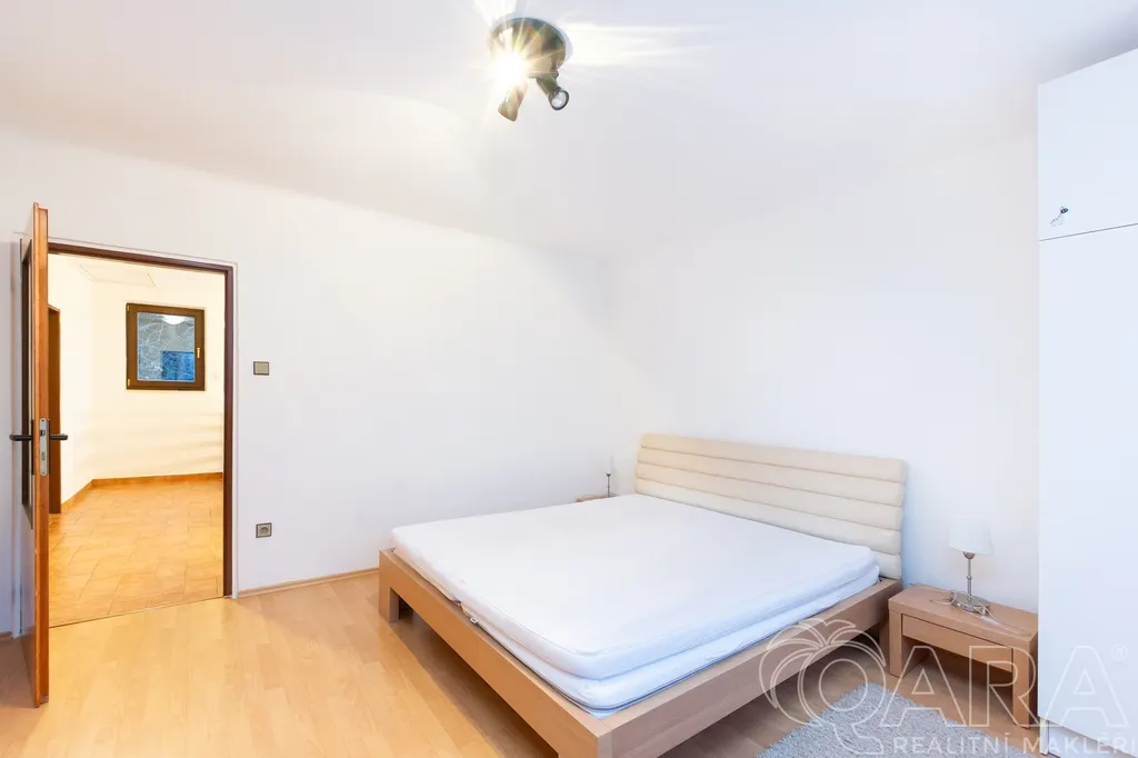 Moderní kuchyně, tři velké ložnice a koupelna s vanou i sprchovým koutem