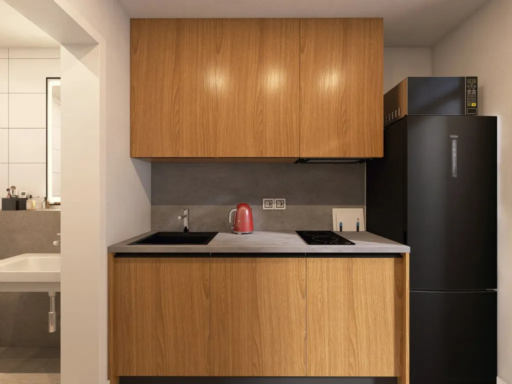 Interiér bytu je navržen s důrazem na funkčnost a čistý moderní design. Byt se nabízí plně vybavený dle vizualizací, které odpovídají plánovanému finálnímu stavu. Kuchyňská linka je vybavena dřezem, lednicí, dvouplotýnkovou varnou deskou, digestoří a mikrovlnnou troubou. Součástí bytu jsou dále úložné prostory i kompletní zařízení obytné části. Byt je ideální pro jednotlivce nebo pár, kteří hledají praktické a kvalitní bydlení v klidném prostředí s dobrou dostupností do centra města.