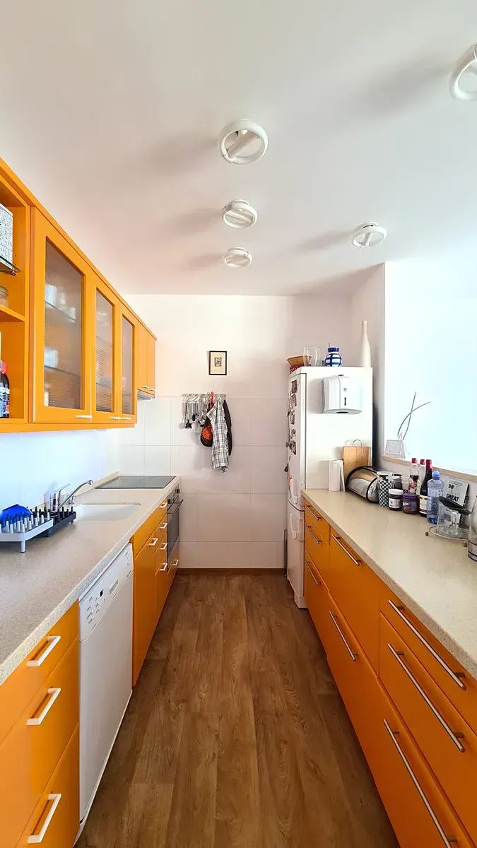 Byt se nabízí (téměř) kompletně zařízený: v bytě zůstane vše jak je uvedeno na fotografiích, vyjma jídelního stolu, židlí a sedací soupravy.