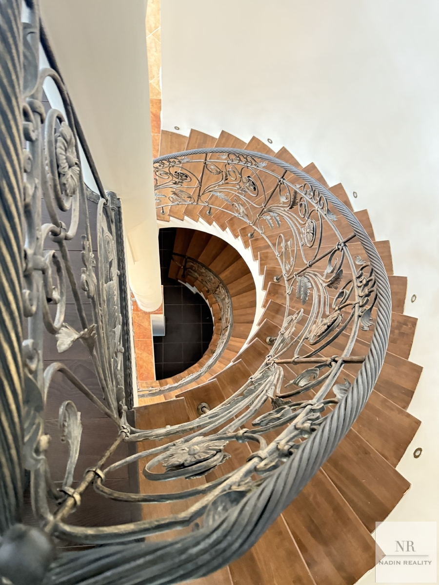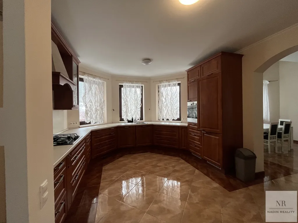 Interiér domu je navržen s důrazem na eleganci a praktičnost. V přízemí se nachází prostorný obývací pokoj s krbem a TV koutem, jehož součástí je vstup na terasu a do zahrady. Dále zde naleznete jídelnu, plně vybavenou kuchyni, pracovnu, ložnici, koupelnu a toaletu. V 1. patře se nacházejí tři ložnice a dvě koupelny, které jsou ideální pro rodiny, které touží po soukromí a pohodlí.