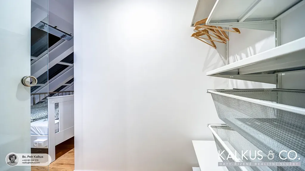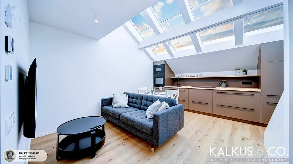 Byt právě prošel citlivou rekonstrukcí v nadstandardním provedení, které spojuje historický šarm s moderním komfortem. Velkorysé loftové stropy, otevřená galerie a světlá paleta materiálů dodávají interiéru vzdušnost, eleganci a klidnou nadčasovost.