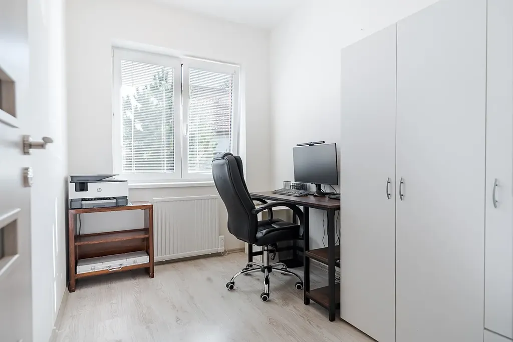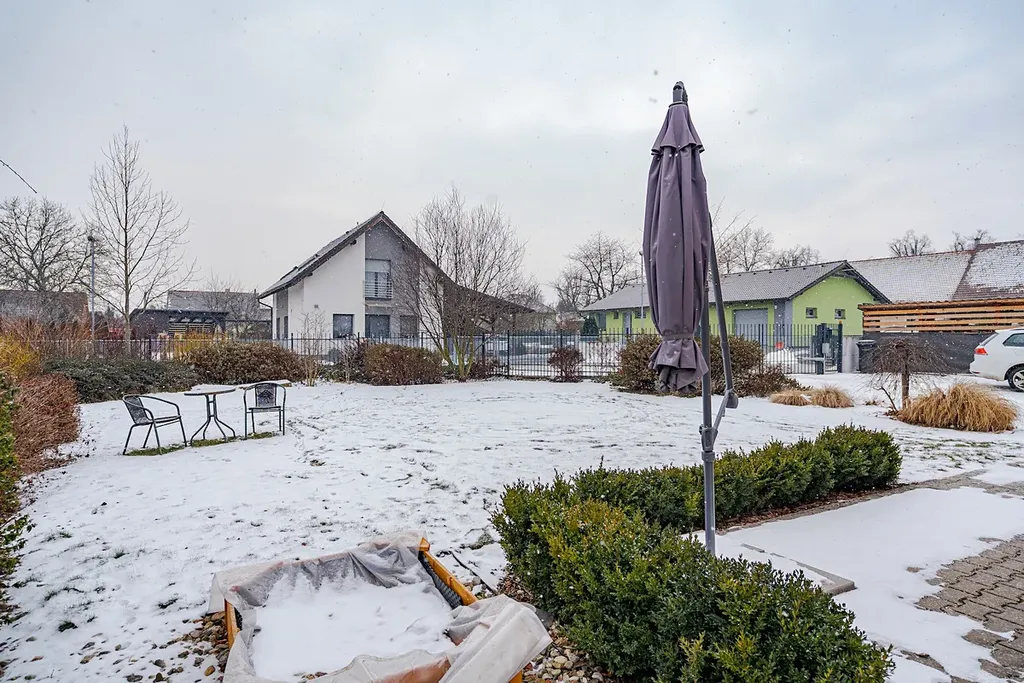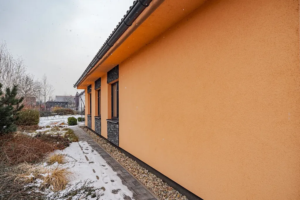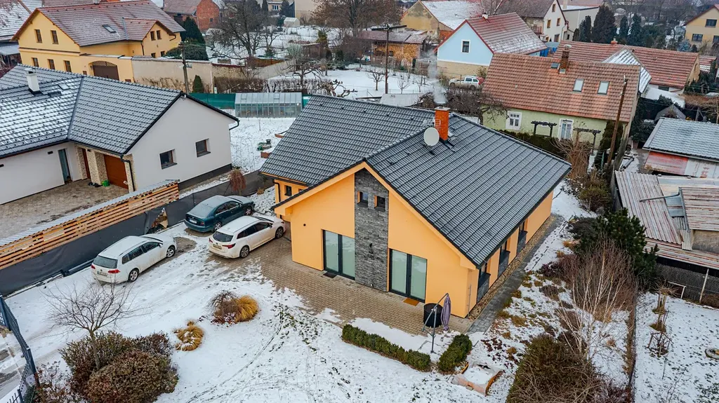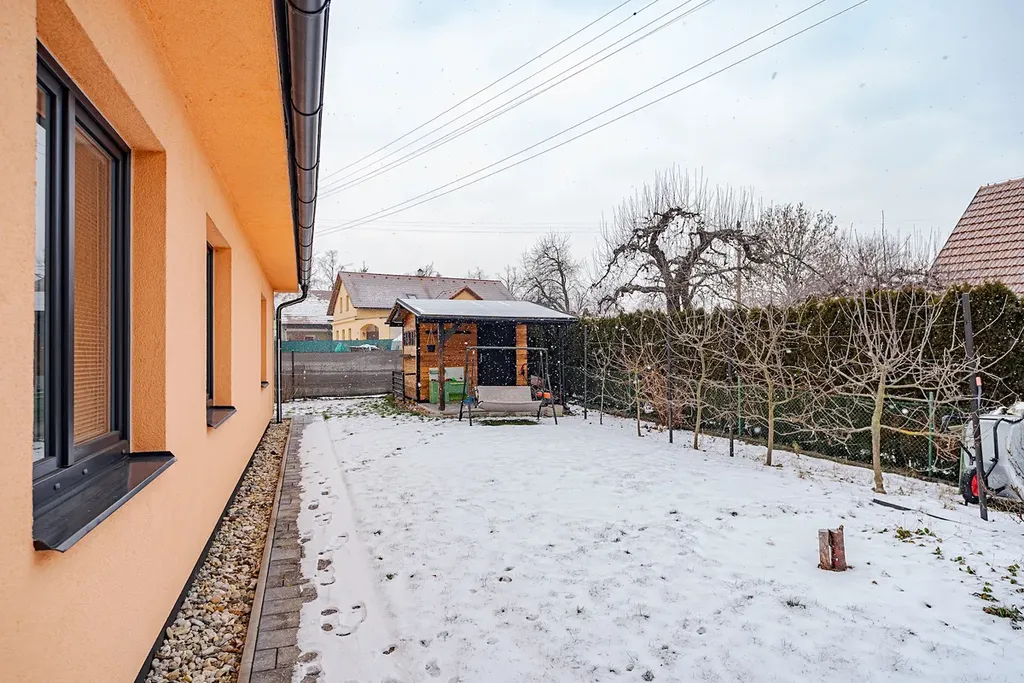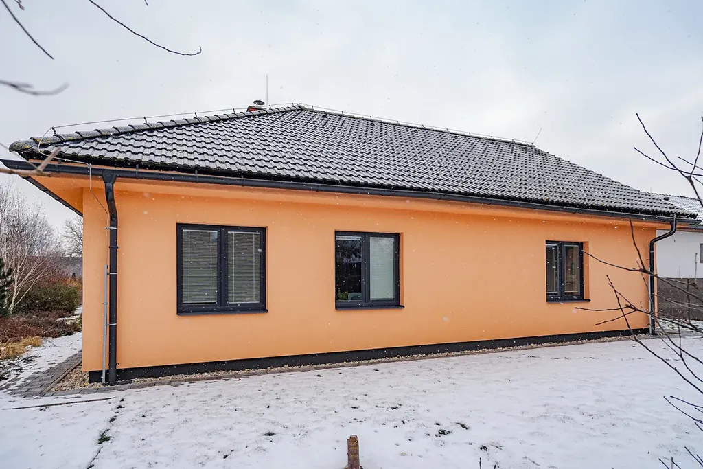 Exkluzivně nabízíme k prodeji rodinný dům 5+kk v obci Hrušová, v klidné části s výbornou dostupností do Vysokého Mýta, Chocně, Litomyšle i Ústí nad Orlicí. Moderní zděný dům, jehož stavba byla zahájena v roce 2016 a zkolaudován byl v prosinci 2017, stojí na udržovaném a oploceném pozemku o celkové výměře 891 m², z toho zastavěná plocha činí 151 m² a obytná podlahová plocha 125 m². Nabízí komfortní a funkční bydlení, které ocení každá rodina. Dům je přízemní a veškerý život se odehrává v rámci jednoho patra. Hlavním srdcem je velkorysý obývací pokoj s jídelnou a kuchyní o ploše 44,6 m², odkud je přístup do všech dalších částí domu. Dispozice je navržena prakticky: najdeme zde prostornou ložnici (16,4 m²), dva samostatné dětské pokoje (12,3 a 11,3 m²), koupelnu, dvě toalety (samostatné WC a další v koupelně) a pracovnu ( 6,90m²), technickou místnost se zázemím, šatnu, chodbu a zádveří. Dům je napojen na elektřinu, vodovod a kanalizaci. Kvalitní stavební provedení zajišťuje zděná konstrukce s izolacemi, střecha je sedlová s pálenou krytinou a okna plastová s izolačním dvojsklem. Pozemek je kompletně oplocen kombinací dřevěného plotu na podezdívce a panelového pozinkovaného oplocení, doplněného o posuvnou bránu. Zahrada je pečlivě udržovaná, s dostatkem zeleně a v zadní části je umístěn praktický zahradní domek. Velkým bonusem je projekt a platné stavební povolení na výstavbu garáže, které si současný majitel již prodloužil – nový vlastník tak má možnost garáž okamžitě realizovat. Obec Hrušová je vyhledávaná díky klidné atmosféře a výborné občanské vybavenosti v okolí. V blízké budoucnosti ještě vzroste její atraktivita – v dosahu obce se připravuje nájezd na novou dálnici D35, což významně zlepší dopravní dostupnost celé lokality. Část vybavení domu může po dohodě zůstat. Více informací u makléře na telefonním čísle.