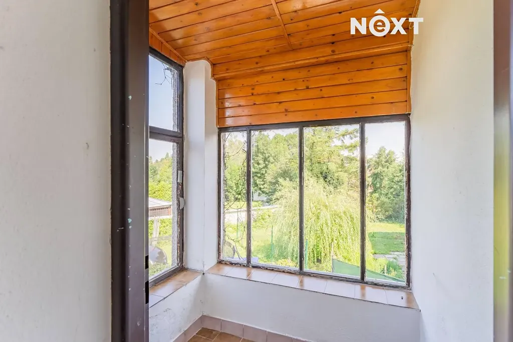 Kuchyně je vybavena kuchyňskou linkou s elektrickou varnou deskou a elektrickou troubou. Obytné pokoje jsou bez vybavení. V koupelně najdete sprchový kout, umyvadlovou skříňku se zrcadlem a WC. K dispozici je i menší prosklená zimní zahrada.