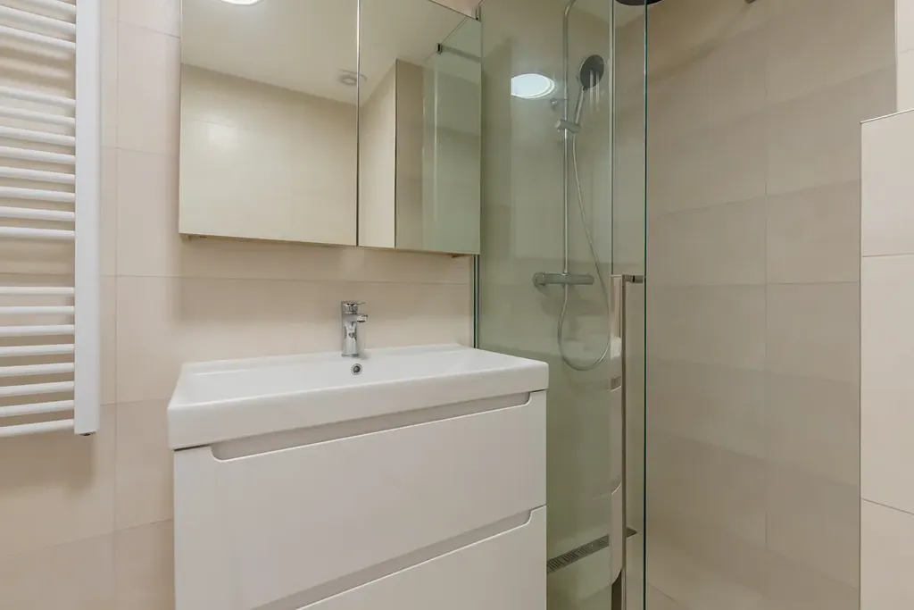 K bytu je možnost pronájmu uzamykatelné samostatné garáže v domě za příplatek 3 000 Kč měsíčně.
