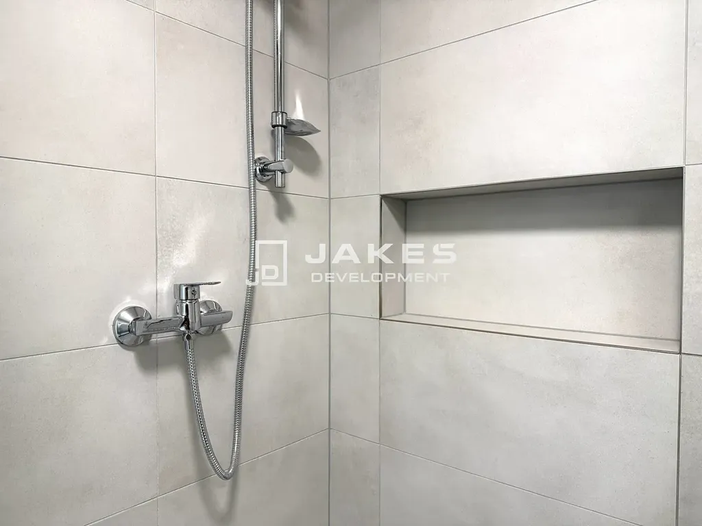 - Velkoformátové obklady a sanita v koupelně působí luxusně a elegantně