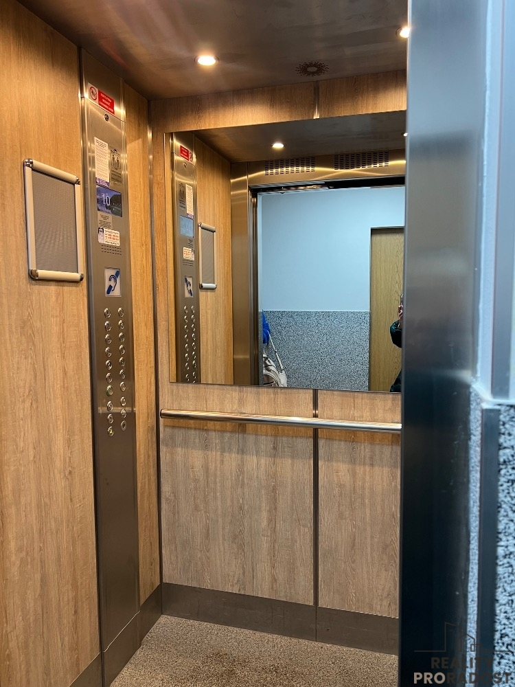 V domě 2 výtahy ( 1 osobní a 1 nákladní). K bytu náleží sklepní koje. Nízké náklady na bydlení.