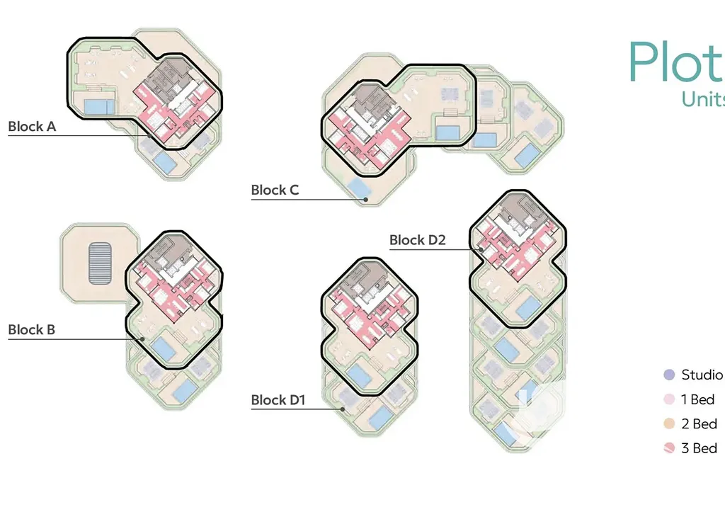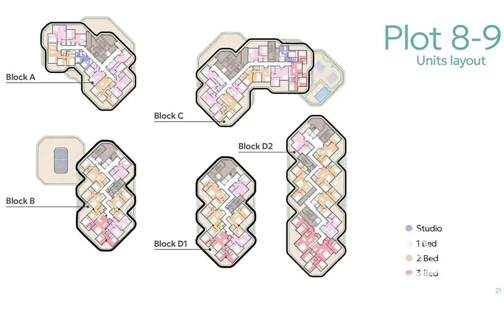 5 rezidenčních budov (6–13 pater)