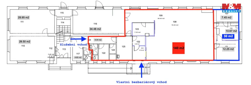 Varianta B (170 m²): Nájem 25 000 Kč + 6 000 Kč záloha (teplo) + cca 1 500 Kč (voda, el., úklid).