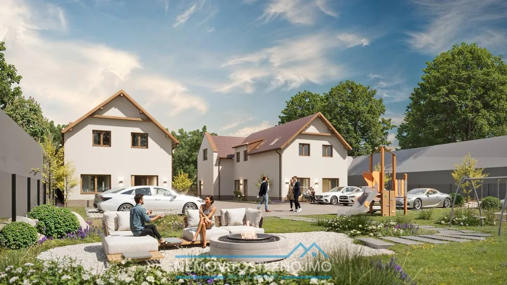 Ke každému domu náleží samostatný pozemek o výměře cca 900 m2.