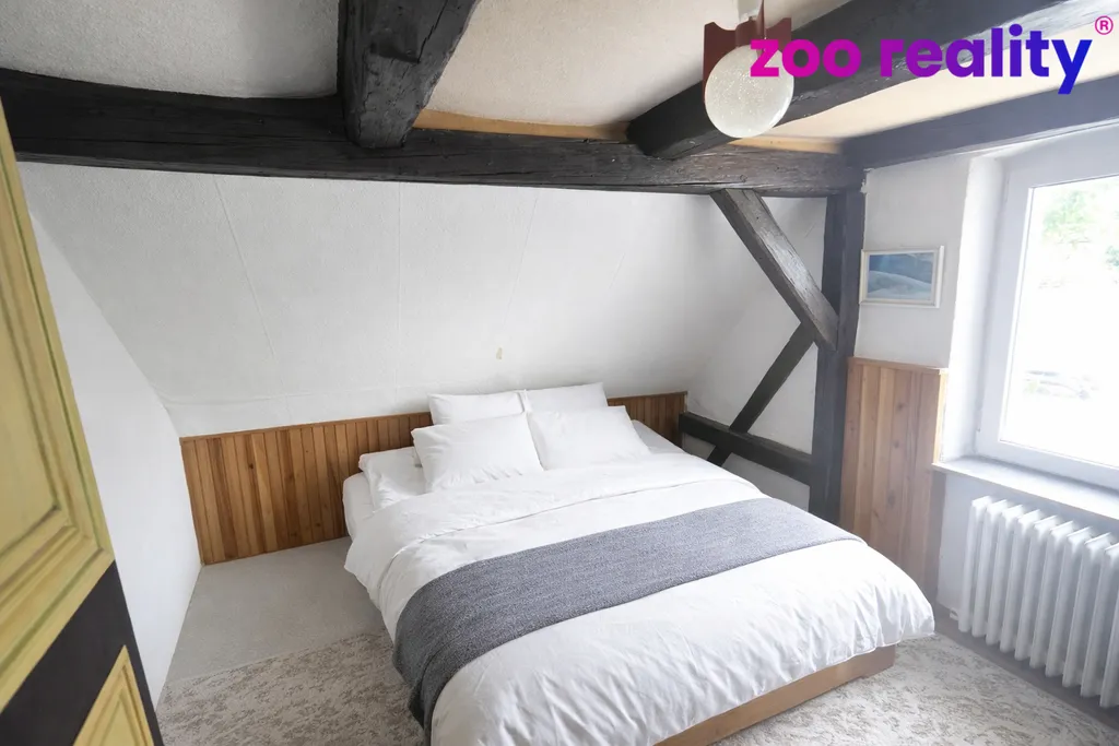 Nabízíme k prodeji chalupu v obci Kovářská, která stojí 25 kilometrů západně od Chomutova na hřebeni Krušných hor v nadmořské výšce okolo 800 metrů v údolí potoka Černá voda. V přízemí se nachází obývací pokoj s jídelnou, kuchyně, koupelna se sprchovým koutem, WC, v patře jsou 3 ložnice a obývací pokoj. Vytápění v domě je řešeno elektrickým kotlem, krbem, krbovými kamny. Dům má malý sklep a garáž. Střecha domu je z kanadského šindele, zahrada není oplocena, po obvodu zahrady jsou zabetonované železné tyče na plot. Pro více info volejte makléři.