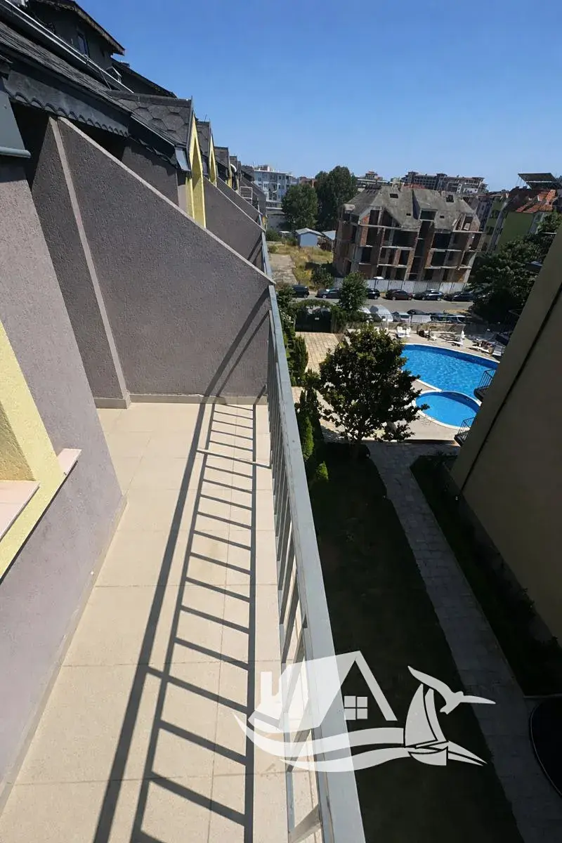 Apartmán o dispozici 1+kk a celkové ploše - 30 m² se nachází v posledním pátém podlaží a díky své poloze působí klidně a vzdušně. Balkon s výhledem na bazén vytváří příjemné místo pro ranní kávu i večerní odpočinek po dni stráveném u moře nebo ve městě. Dispozice je praktická a ideální jak pro vlastní pobyty, tak pro krátkodobý i sezónní pronájem.