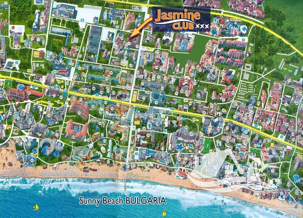 Lokalita patří mezi nejvyhledávanější na Slunečném pobřeží. Komplex se nachází v blízkosti centrální promenády, obchodů a supermarketů, přibližně 12 minut chůze od pláže a zhruba 10 minut od oblíbeného aquaparku Action. V okolí najdete restaurace, kavárny, moderní bary i kluby, které dodávají místu živou atmosféru, aniž by narušovaly klid rezidenční části.