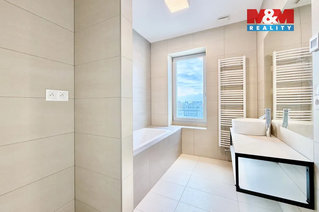 Pronájem bytu 2+kk s terasou v centru Zlína. Světlý prostorný byt o rozloze 59 m2 se nachází v 7. NP moderní budovy s výtahem. V hlavní místnosti s velkými okny je kuchyňská linka vybavená sporákem, myčkou, lednicí. Ložnice je situována do klidné oblasti. V koupelně je vana a dostatek prostoru pro pračku a sušičku. WC je samostatné. Terasa s prosklením nabízí výhled na město. Součástí pronájmu je sklepní kóje. Byt je volný ihned.
