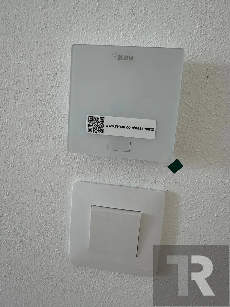 Podlahové vytápění (včetně řízení vytápění přes mobilní aplikaci) v celém bytě včetně sprchového koutu zajišťuje maximální komfort.